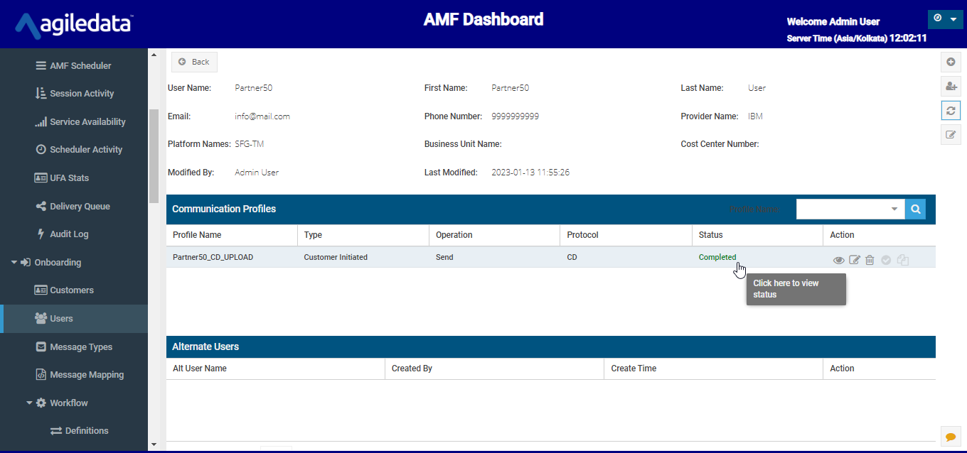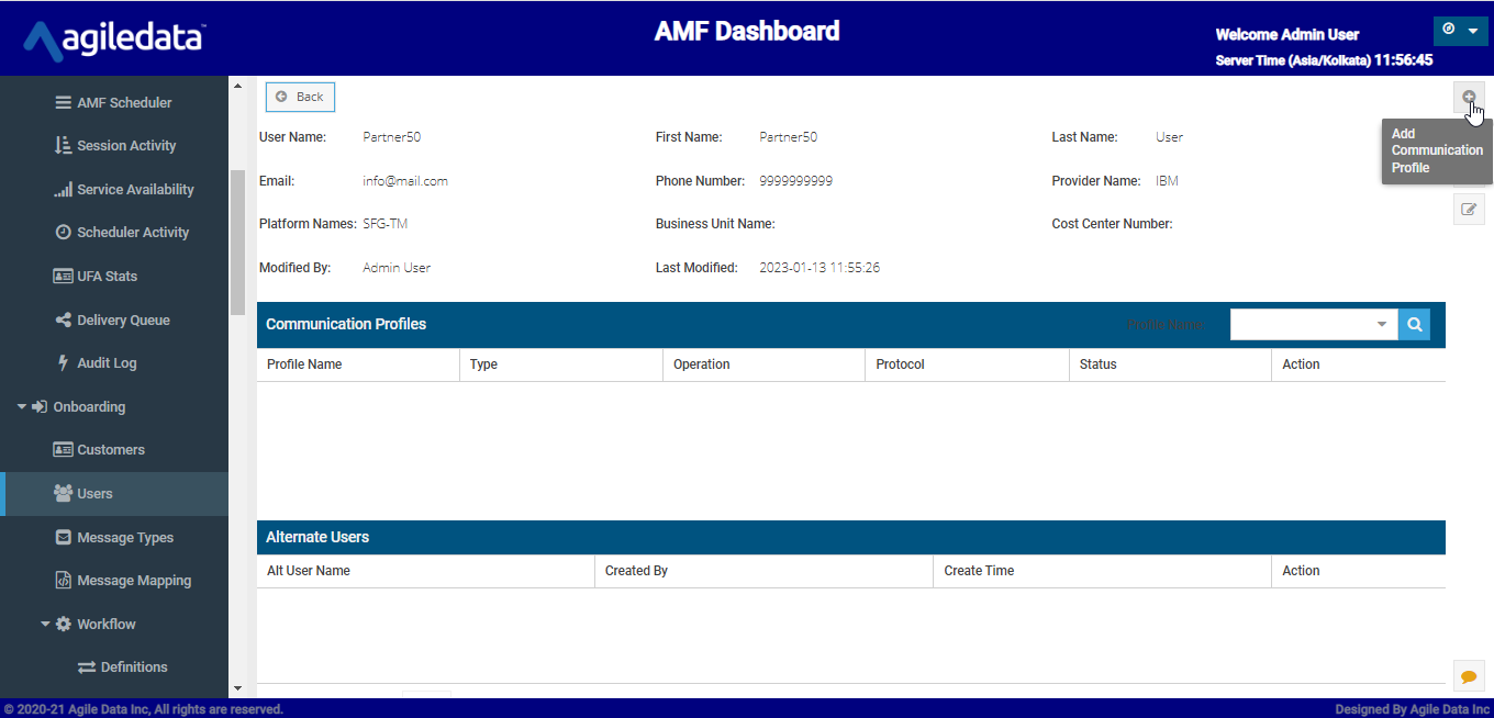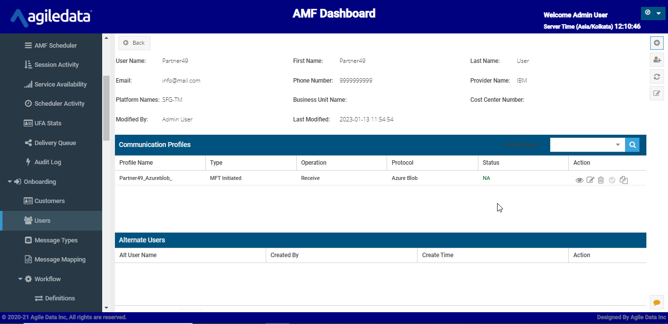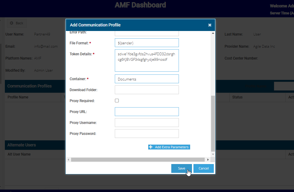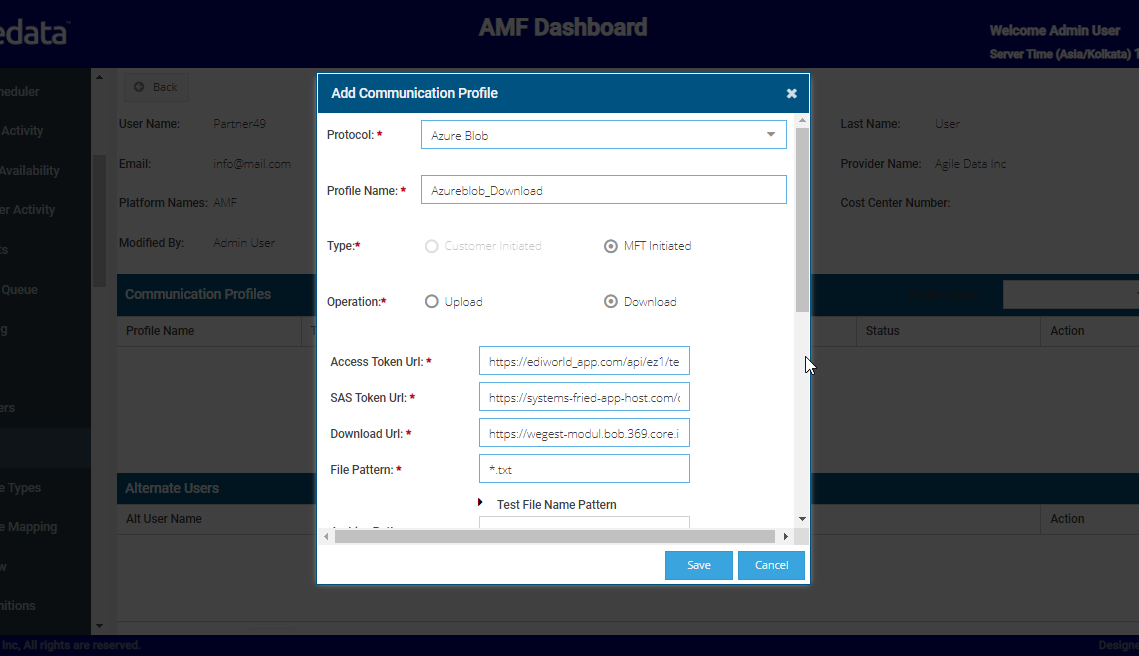 **B. Onboard Partner49 Azure blob receives profile in SFG using AMF (MFT Initiated Communication Profile (Download)).**