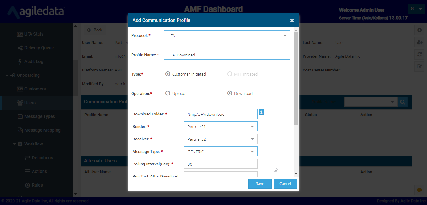 Select the Protocol as UFA, Operation as download give the remaining details and click save.