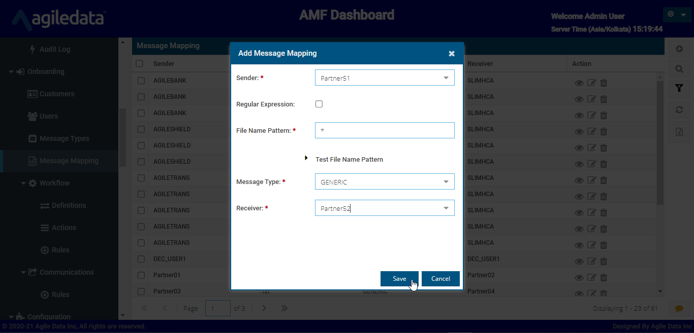 Select Sender, Receiver, and Message Type give pattern of the files that Partner51 will send and clicks save.