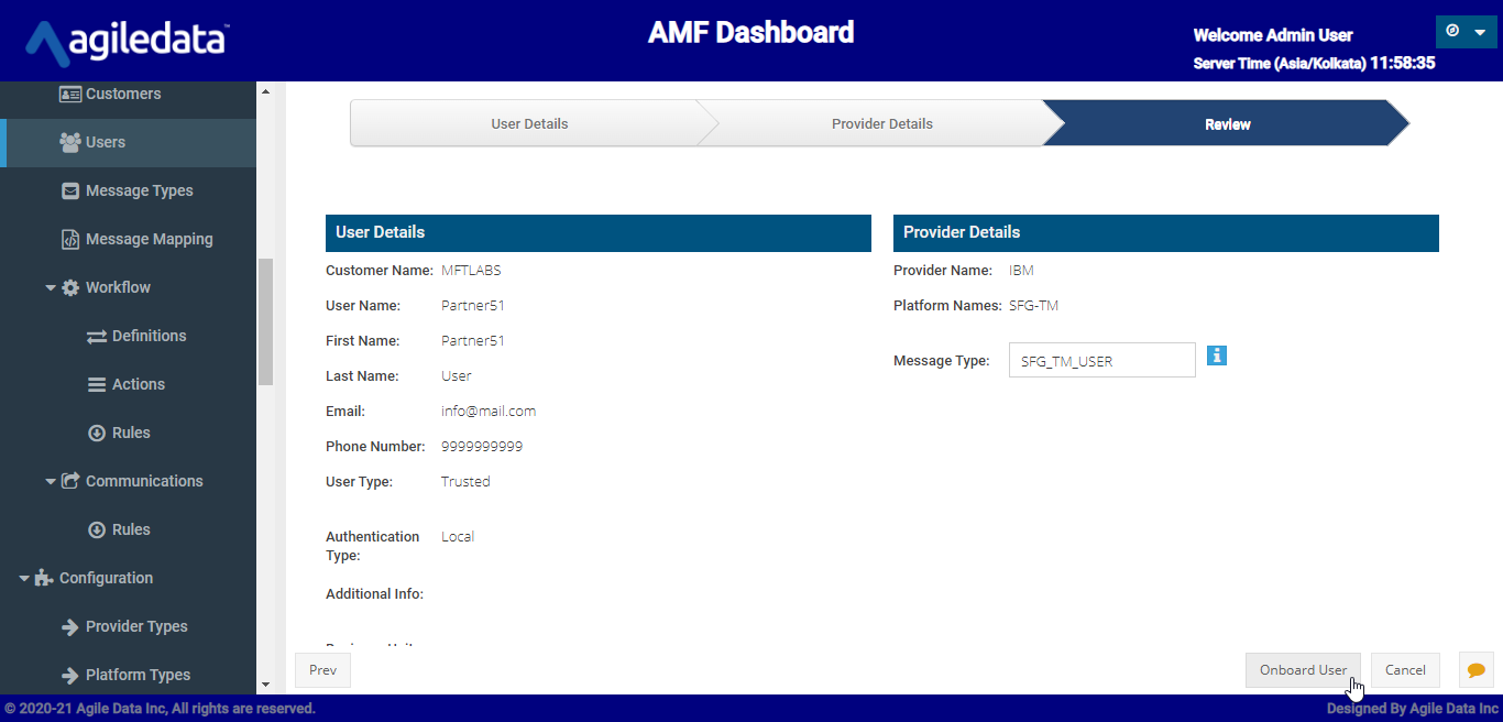 Verify the Partner details and click **Onboard User**.